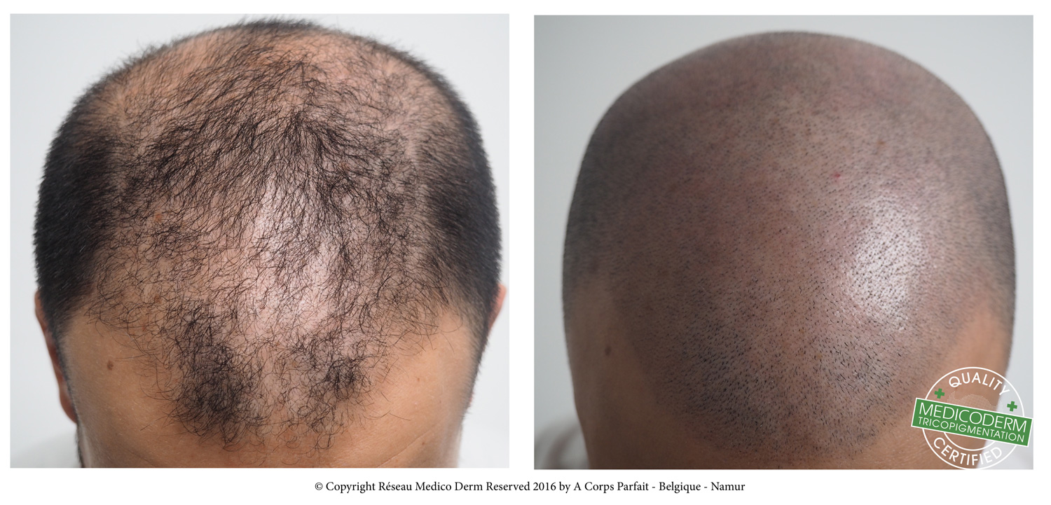 Last van kaalheid of heel dun haar? Tricopigmentatie bestaat erin haarstoppels na te bootsten met biologisch afbreekbare pigmenten waardoor kaalheid kort geschoren lijkt en heel dun haar weer volumineus lijkt.